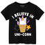 Magical unicorn tee crafted from ultra-soft cotton. Let your little girl showcase her imagination with this enchanting, comfortable shirt that brings fantasy to everyday wear.