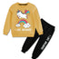 Magical yellow and black tracksuit set for girls featuring 'I Love Unicorns' design with adorable rainbow unicorn and clouds. Includes sweatshirt and matching black joggers with 'I Love Unicorns' text on leg. Warm fleece material perfect for winter. Your little unicorn lover will adore this whimsical and cozy outfit.