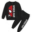 Complete Spider-Man tracksuit set for boys featuring black sweatshirt with mask design and matching joggers. Warm fleece material perfect for winter. Your little superhero will love this cozy outfit.