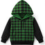 Trendy Green & Black Checkered Fleece Hoodie for Boys